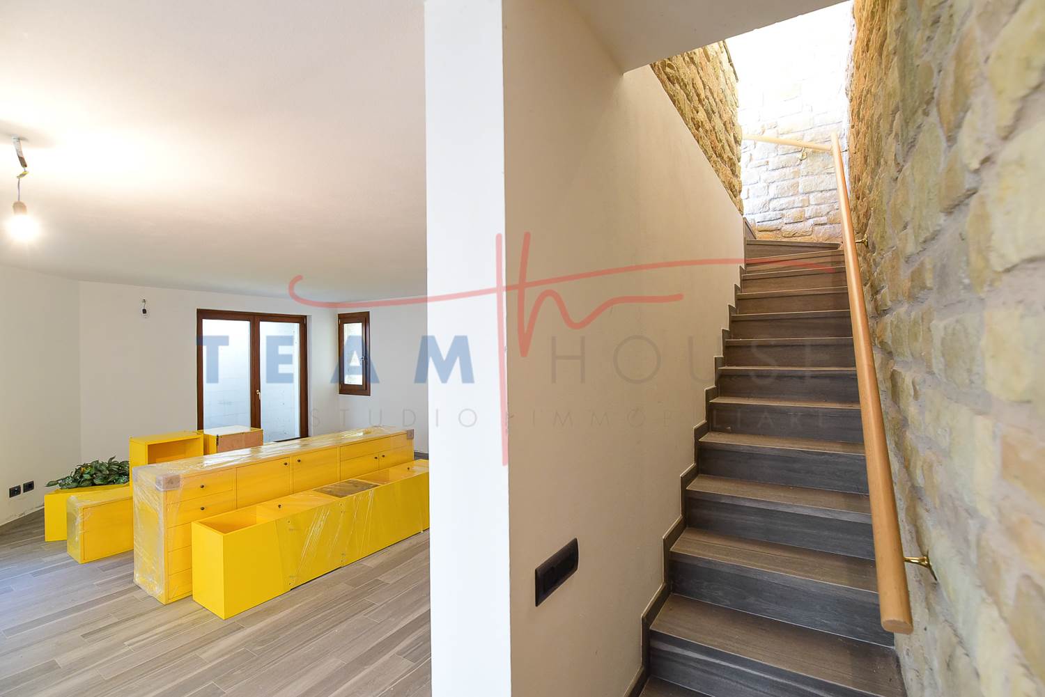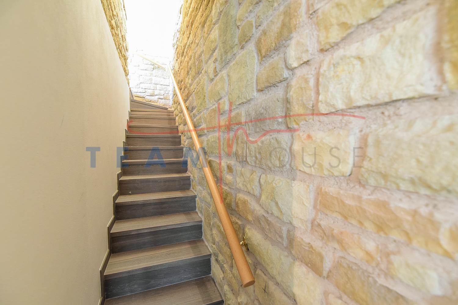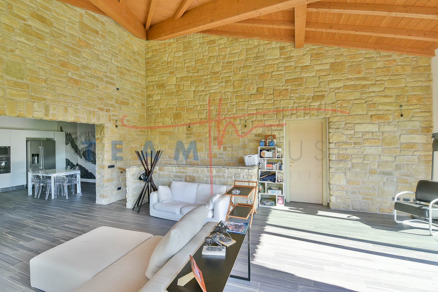 Finiture di Pregio: Il richiamo alla pietra esterna prosegue anche in alcuni dettagli interni, creando una coerenza stilistica raffinata.