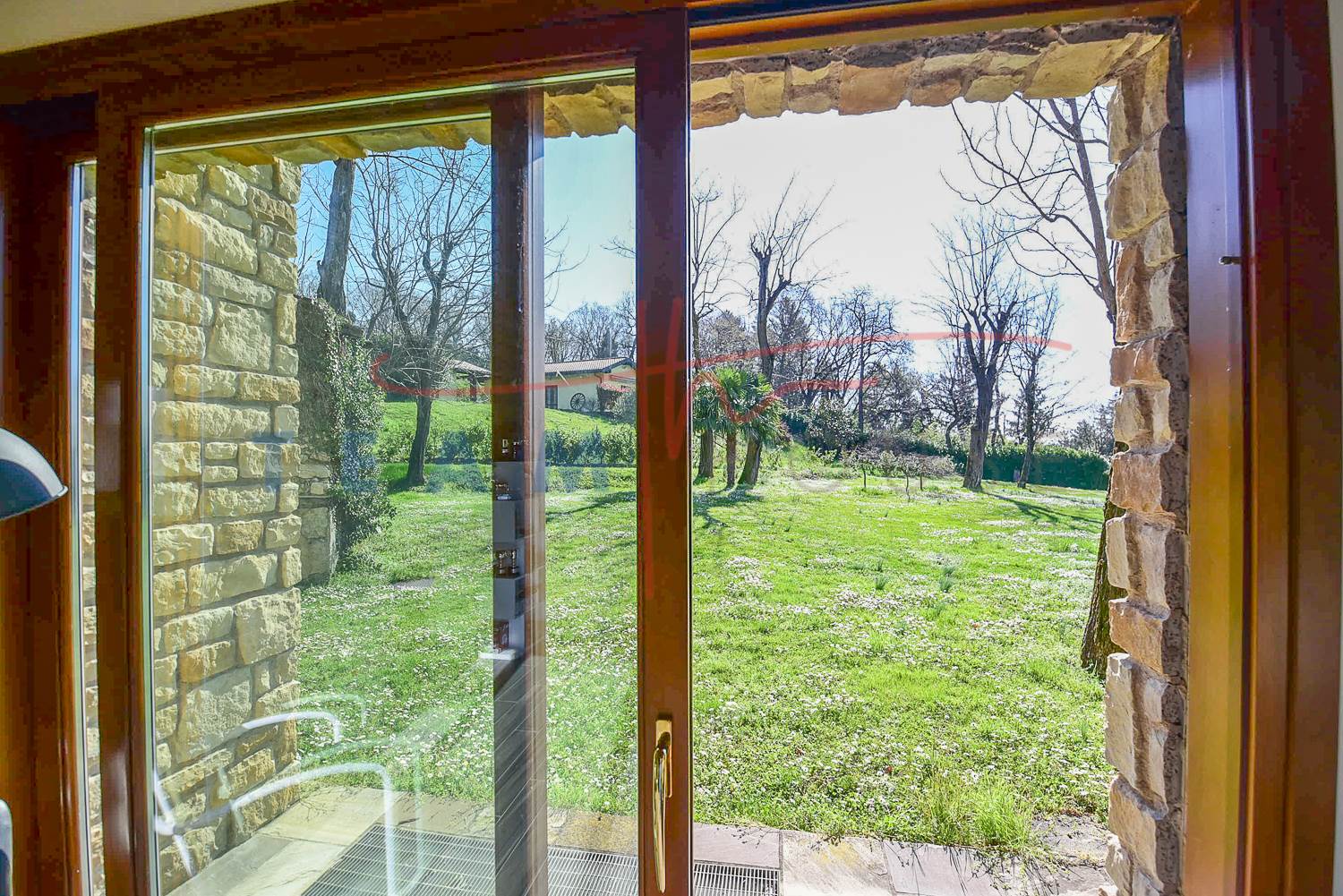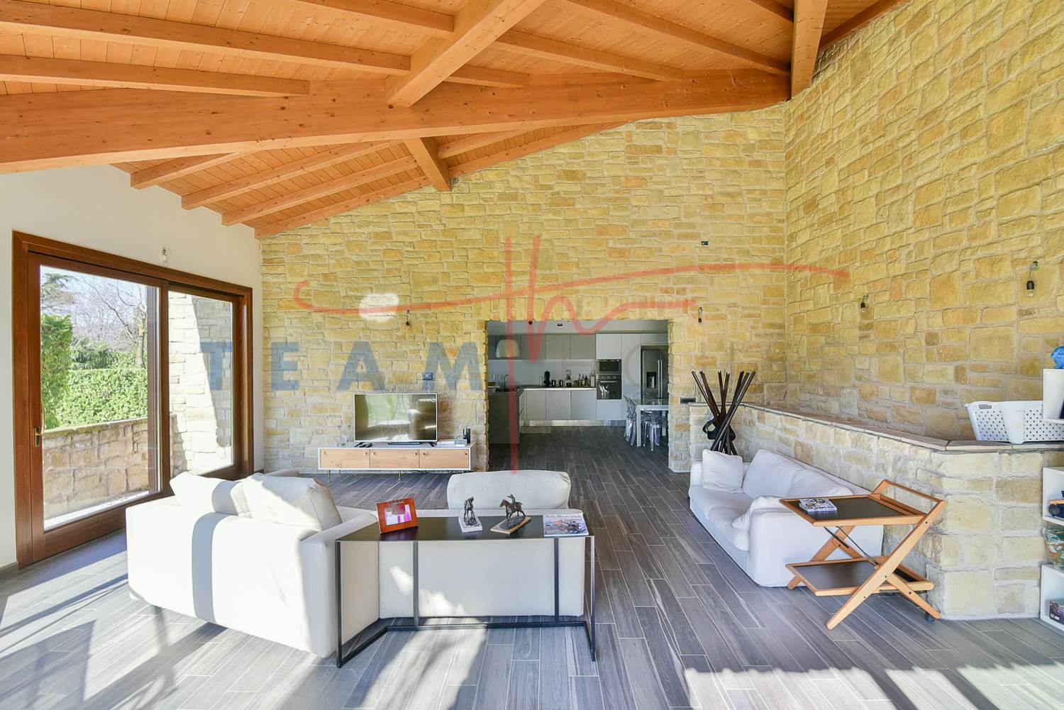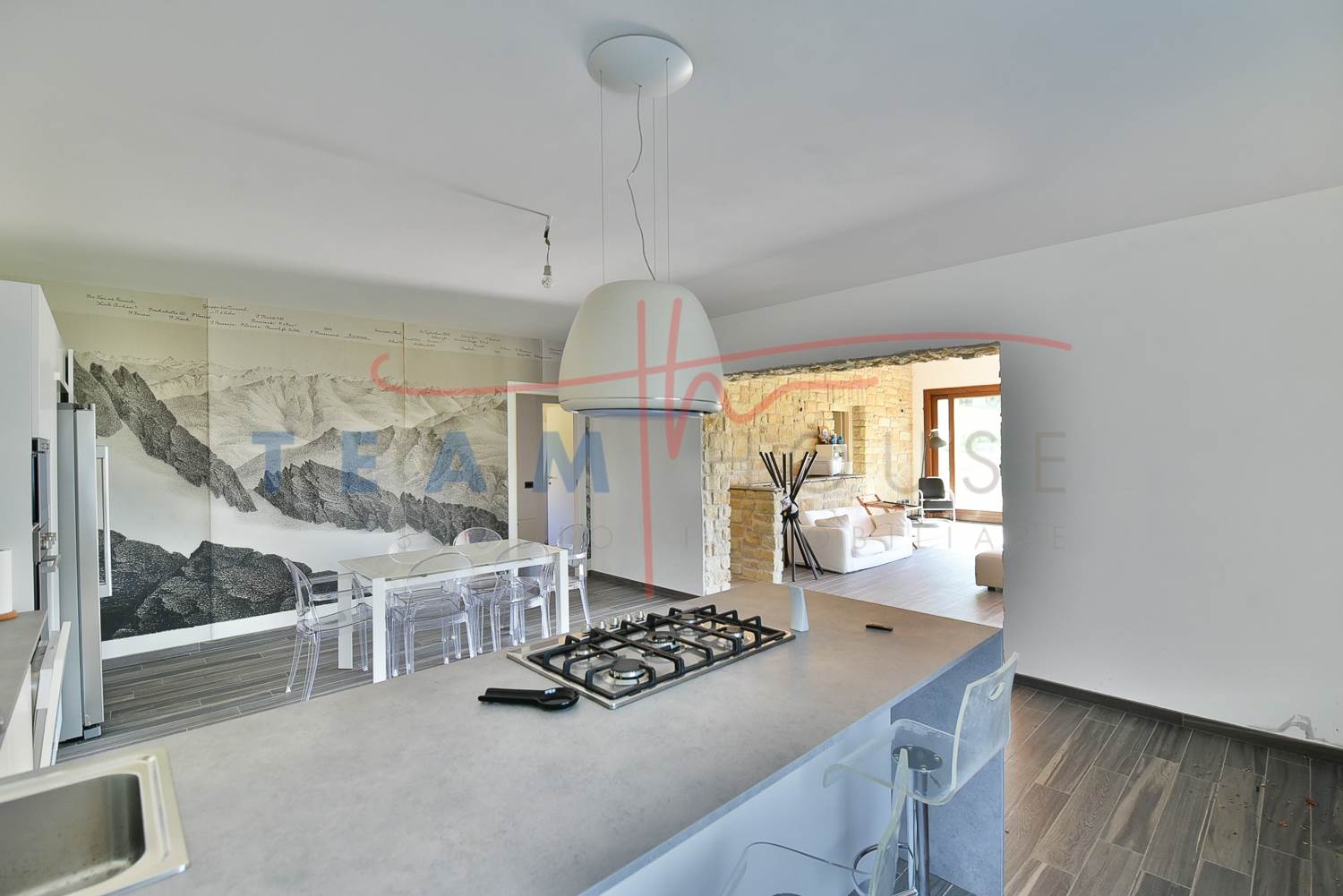 Finiture di Pregio: Il richiamo alla pietra esterna prosegue anche in alcuni dettagli interni, creando una coerenza stilistica raffinata.